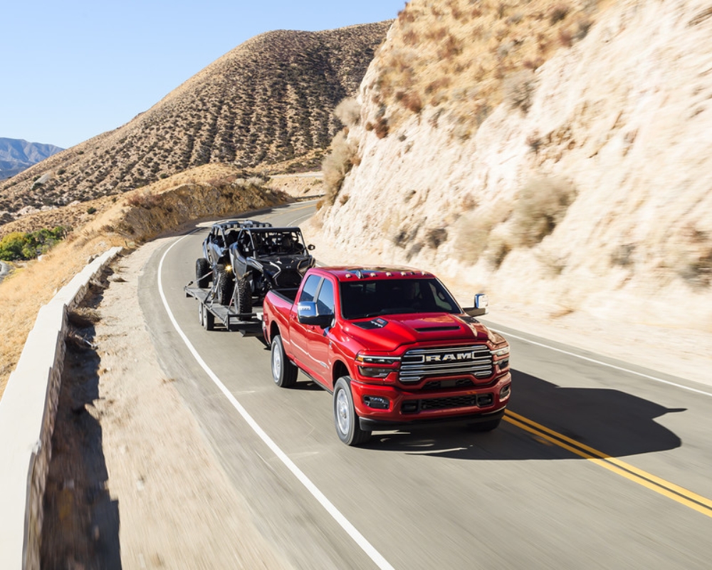 The Ram 2500 is built with standard safety features like advanced braking, stability control, and multiple airbags. You can add extra driver-assist systems like blind-spot monitoring, forward collision warning, and trailer tire pressure monitoring. These features work in the background to give you extra confidence on busy highways, country roads, or when towing heavy loads.